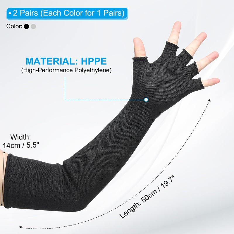 - Color: Black, Gray; Material: HPPE (High-Performance Polyethylene); Width: 14.5 cm x 5.7 inch; Length: 50 cm / 19.7 inch; Packing List: 1Pairs x Arm Protective Sleeves