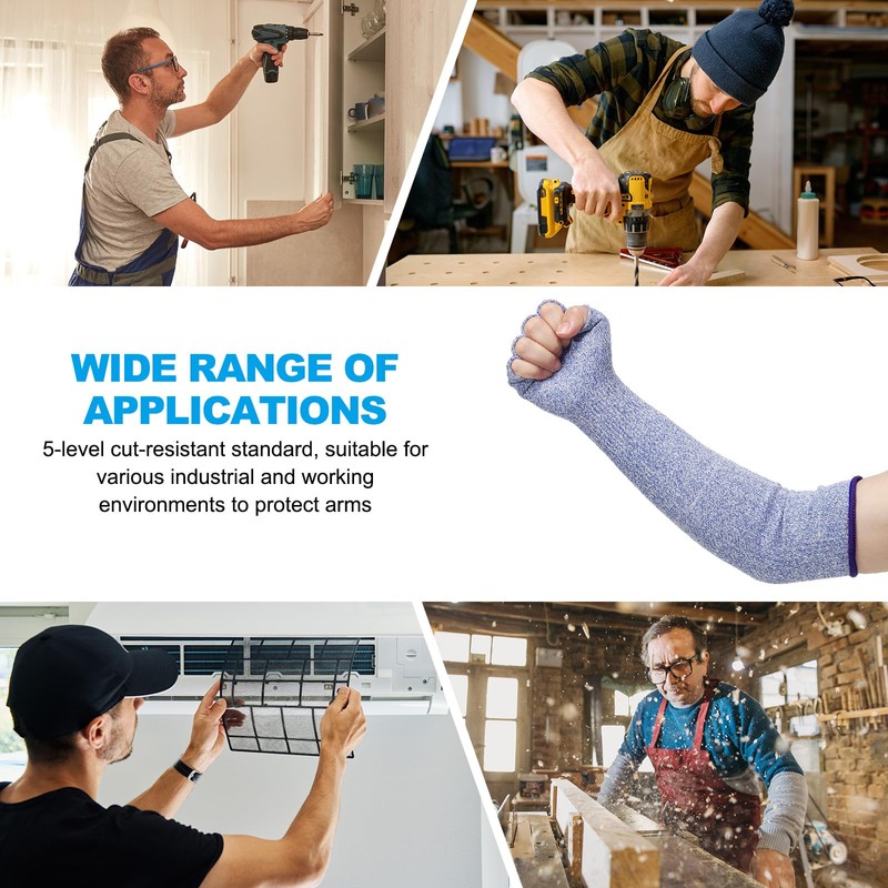 - Application: HPPE arm protection sleeves with a 5-level cut resistance standard are designed to protect arms from cuts in various industrial and work environments. Suitable for manufacturing plants, construction sites, auto repair shops, metalworking industries, kitchens, gardens, farms, or any workplace where arm protection is needed