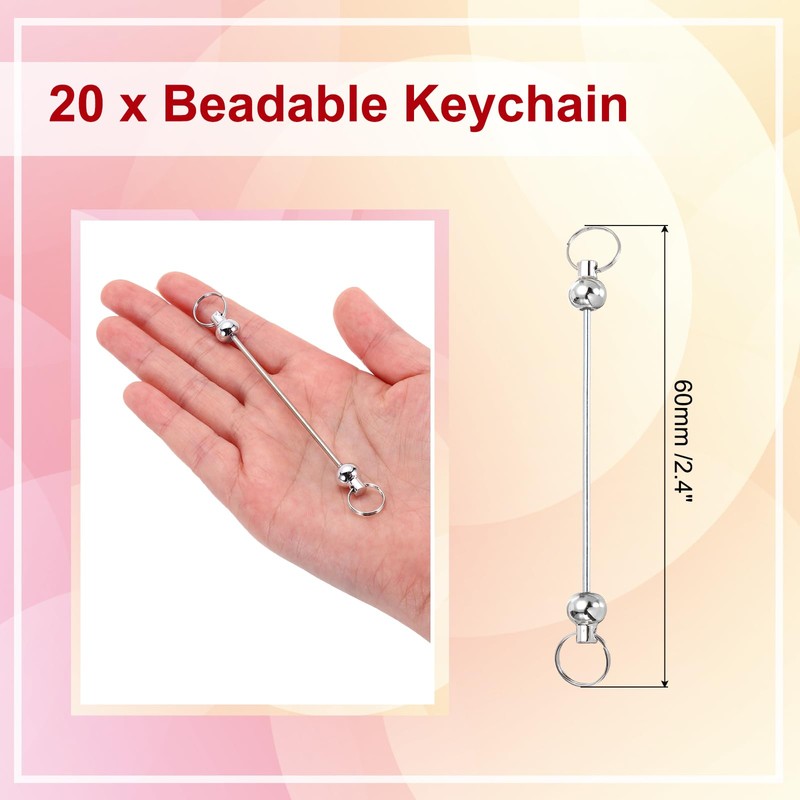- Specification: Material: Metal; Color: Silver Plating; Length of Beaded Part: 60mm/ 2.4 inch; Thickness: 2mm/ 0.08 inch; Overall Length: 100mm/ 4 inch; Package List: 20 Pcs x Beadable Keychain Bars