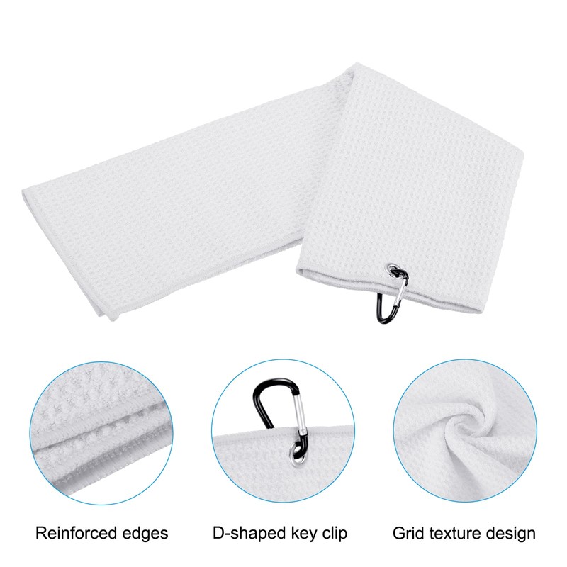 - Advantage: This tri-fold golf towel is made of microfiber material, which is super absorbent and easy to clean. Reinforced edges, no off-line. Grid texture design, thick and no lint, durable and wrinkle-resistant. There are 3 hanging holes on the top of the towel, which can be folded and hung. At the same time, it is convenient to fold up and use, and it is not easy to fall apart when wiping.