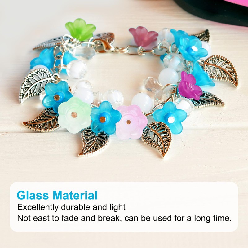 - Glass flower beads have a delicate and elegant appearance that adds beauty to your jewelry or craft project. Widely used in jewelry making DIY craft projects, such as necklaces, bracelets, earrings, anklets, cell phone hangings, key chain decorations, hair clip pins, decorations, bead curtains, etc