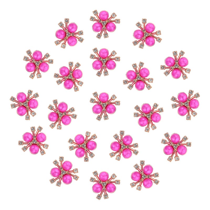 PATIKIL 20PCS Pearl Flower Buttons, Rhinestone Pearl Flower Buttons Embellishments Faux Pearl Rhinestone Buttons Flat Back Brooch for Jewelry Making Crafts Wedding Clothes Bag, Rose Red