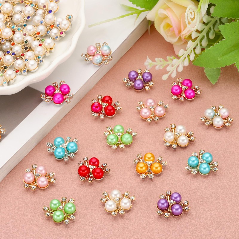 - Material: Rhinestones, ABS, Alloy; Rhinestones pearl flower buttons size: 19 x 19 x 8 mm / 0.75x 0.75 x 0.31 inch (L*W*T)