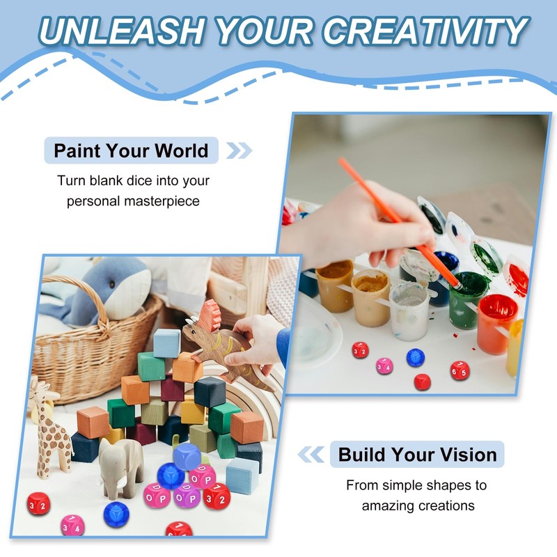 - Advantage: Crafted from acrylic, these blank dice are durable, lightweight, and impact-resistant, ensuring long-lasting use. Their smooth, splinter-free surfaces are easy to draw on, paint, or glue, while the rounded corners enhance security. Suitable for repeated use, they can be easily cleaned and customized for various creative or educational purposes.