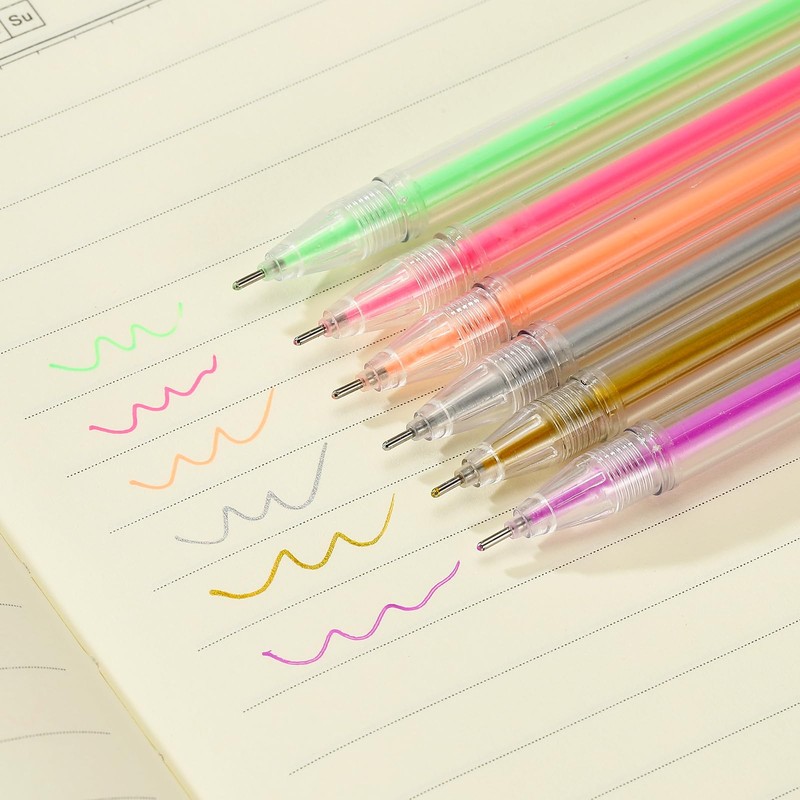 - Application: The color gel pens are suitable for painting, coloring books, scrapbooks, doodling, decorations, craft card making, etc., marking the highlights and adding extra color and fun to DIY creation and writing.