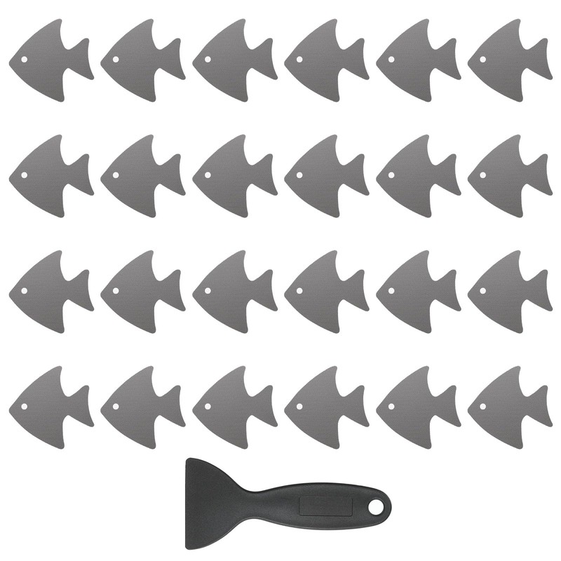 PATIKIL 24 Pcs Non Slip Bathtub Stickers, Anti Slip Shower Stickers with Scraper Bathroom Shower Floor Decals Fish Shape Cute Treads Tubs, Gray