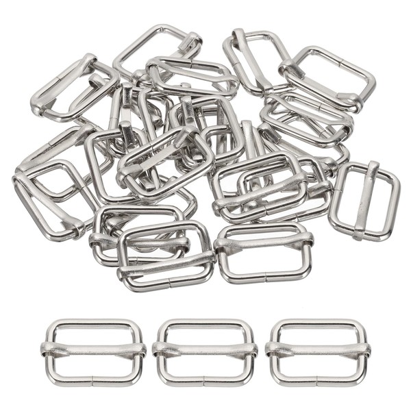 PATIKIL 24x40mm Slide Buckle, 24 Pcs Metal Adjustable Webbing Tri-Glide Strap Adjuster for Backpack Bag Making Purse DIY Accessories Belt Hardware, Silver Tone