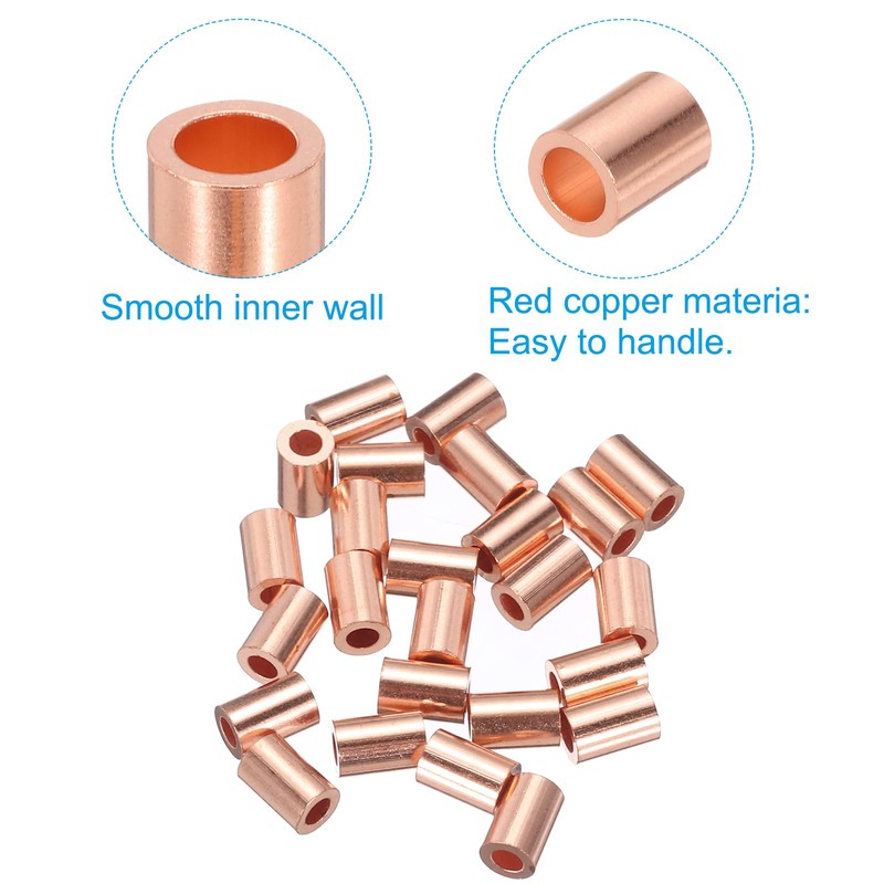 PATIKIL 25pcs 1/16"/1.5mm Wire Rope Stop Sleeves Copper Crimping Loop Sleeve Ends for Wire Rope Cable Ferrules Golden Tone