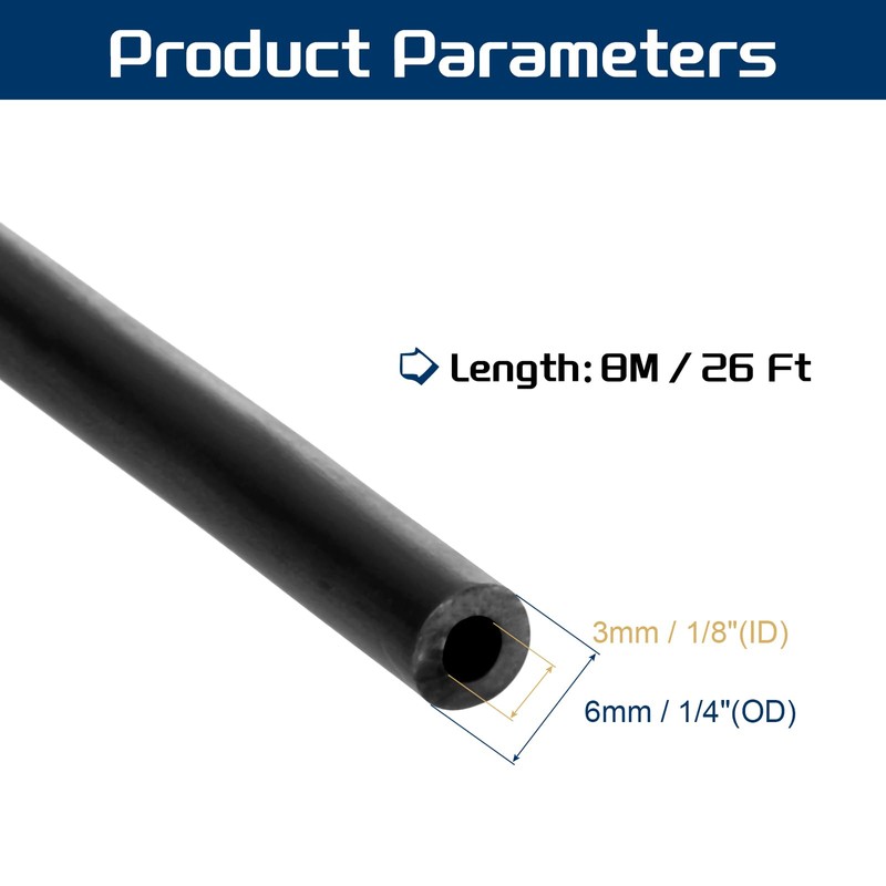 Size: 1/8"(3mm) ID x 1/4"(6mm) OD, 26 Ft(8M) Length