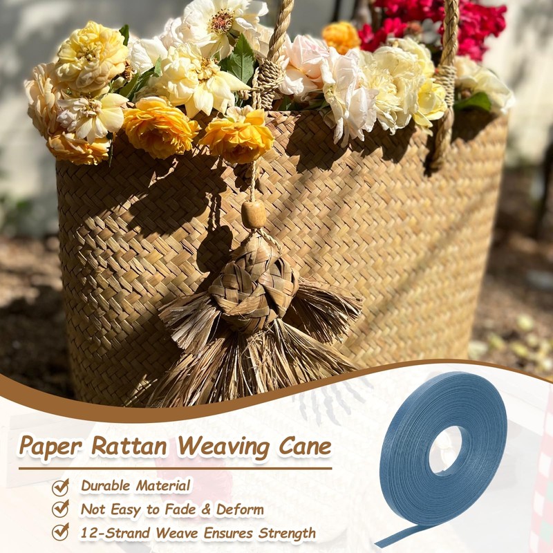 - Specification: Color: Gray Blue; Material: Paper; Strands Of Rattan: 12 Strands; Size: 25m x 15mm/ 27.34 Yards x 0.6 inch (L*W); Packing List: 1 Roll x Paper Rattan Weaving Cane