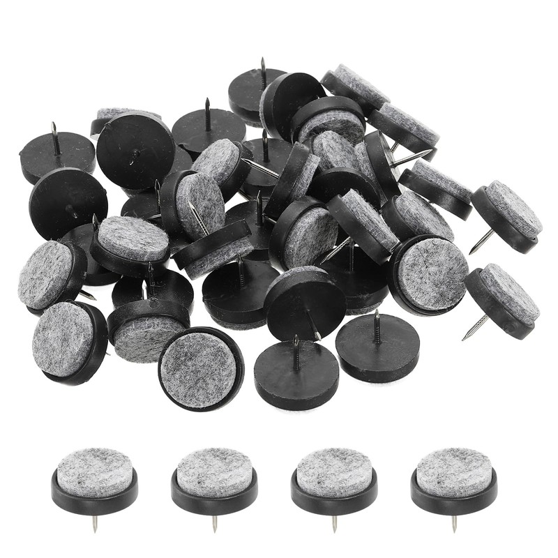 - Color: Black; Material: ABS Plastic, Felt; Head Size: 28 x 10 mm / 1.1 x 0.39 Inch(Dia. x H); Felt Diameter: 23 mm / 0.91 Inch; Nail Size: 1.8 x 15 mm / 0.07 x 0.59 Inch; Packing List: 72 Pcs x Felt Furniture Pads