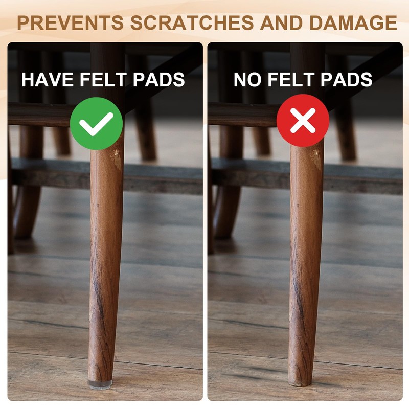 - Application: These felt pads can protect ceramic tile and hardwood floors, as well as keep your table and chair legs from unsightly scratches and damage, offering a quiet home environment for your family. It also can raise the furniture slightly and protect it from moisture. Suitable for wooden tables, chairs, cabinets, desks, sofas, dressers, and a variety of other wooden furniture