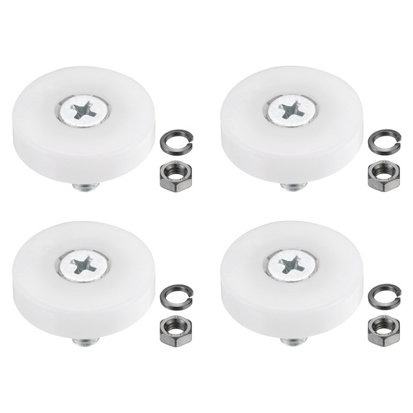 PATIKIL 29mm Drawer Rollers, 4 Set Nylon Positioning Pulleys Small Drawer Pulley Replacement Wheel with Spring Washer and Nut for File Cabinet Slides, White