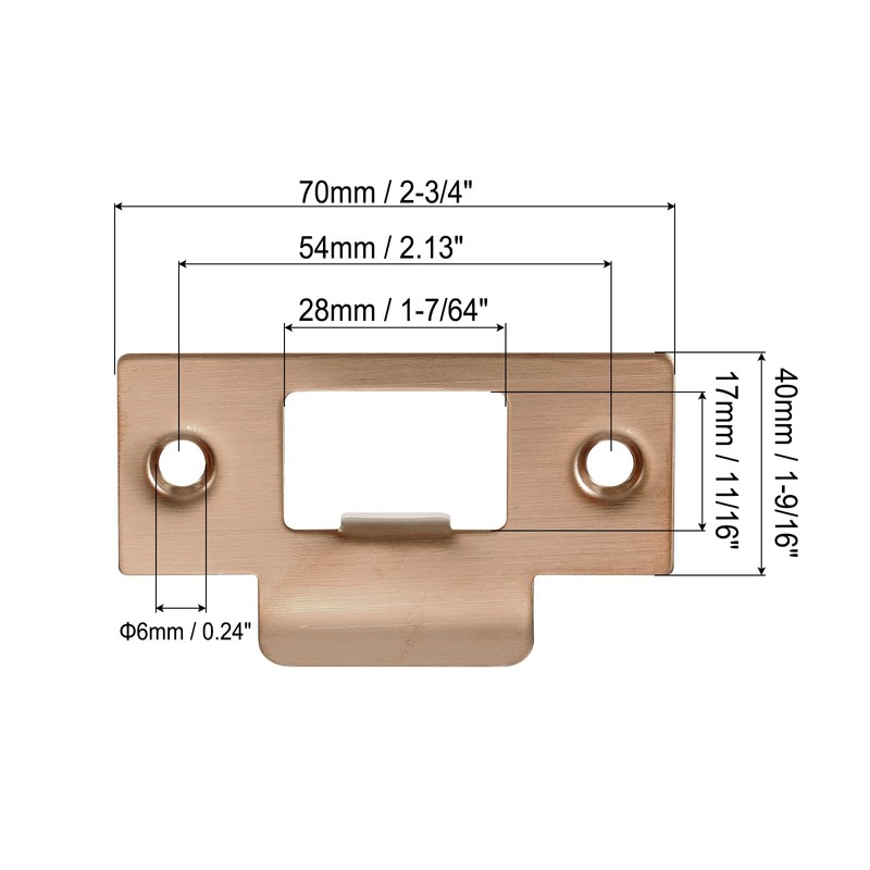 - Size:Total Size:70*40mm(LxW),Hole Size:28*17mm(LxW),Color:Rose Gold,Packing List:2 x Door Strike Plate,Buckle Box,Screw,Self-sealing Bag