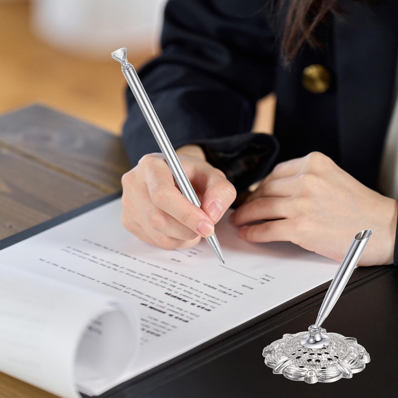 - Advantage: This hollow round pen holder signing pen set is made of metal and features a hollow round design adorned with crystal diamond. It is durable, sturdy, and resistant to deformation, and it provides a comfortable grip to allow you to use a long time.