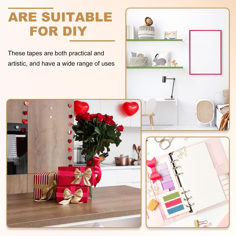 - These tapes are both practical and artistic and have a wide range of uses. They are very suitable for DIY, such as handmade card making, diaries, greeting cards, photo frames, mask decoration, book cover decoration, etc. They are also suitable for home wall decoration. It can also be used for gift packaging for various festivals and occasions such as Christmas and Easter, adding unique beauty to your gifts.