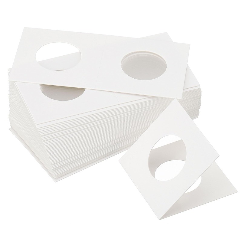PATIKIL 2x4" Cardboard Coin Holders 300pcs Coin Flip Cardboard Coin Holder Flip 26.5mm Coin Collecting Supplies Holder Storage White