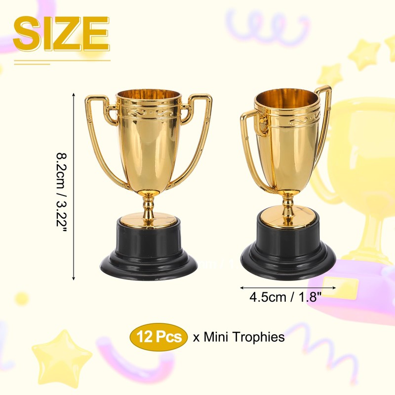 PATIKIL 3.22 Inch Mini Trophies, 12 Pcs Copper Award Trophy Cups Plastic Small Copper Trophies Award for Sports Tournament Competitions Party Favors Props Winning