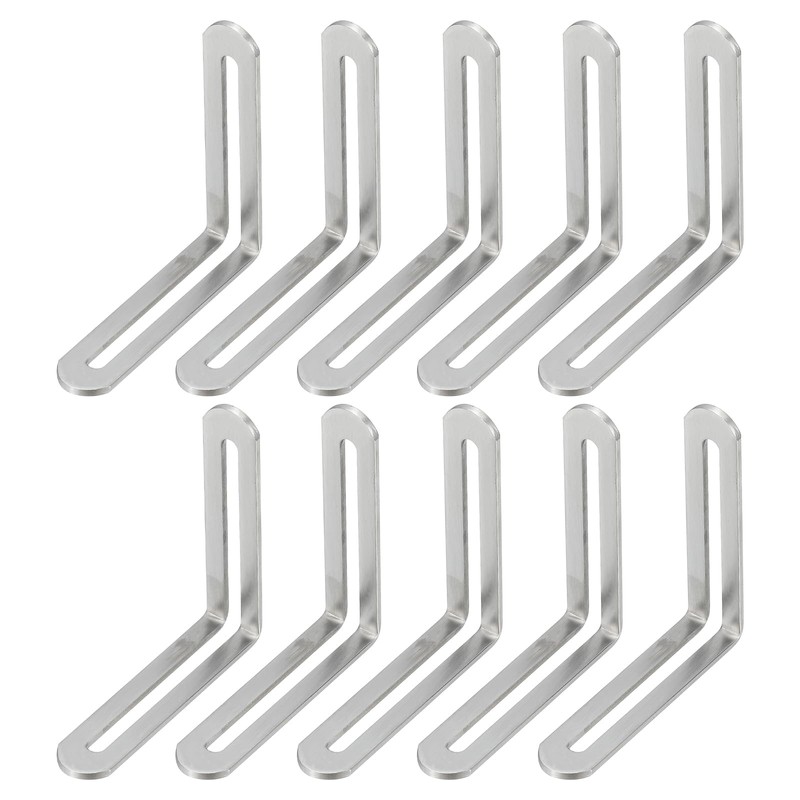 - Color: Brushed Silver; Material: Stainless Steel; Total Size: 80 x 19 x 80 mm / 3 3/20 x 3/4 x 3 3/20 Inch(LxWxH); Slot Hole Size: 70 x 5.5 mm / 2 19/25 x 11/50 Inch(LxW); Thickness: 3 mm / 3/25 Inch; Packing List: 10 Pcs x L-Shape Corner Brace (Screws not included)