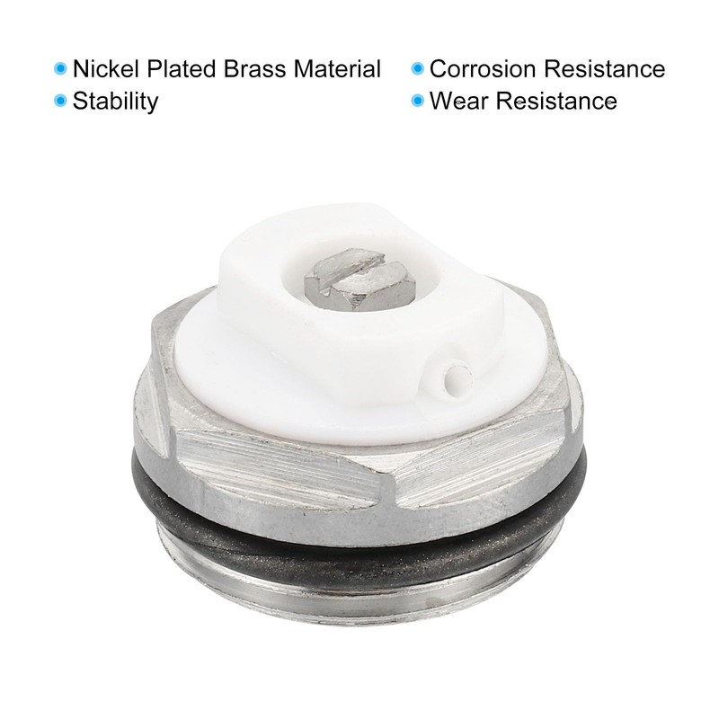 - Color: Silver, White; Material: Nickel Plated Brass, Nylon; Overall Size: 29x19mm/1.14x0.75inch (OD*H); Thread Diameter: 3/4" Male (26.441mm/1.04inch); Max. Working Temperatures: +120°C; Max. Working Pressure: 1,0MPa (10 bar); Packing List: 1 x Radiator Air Vent Valve, 1x Radiator Valve Key