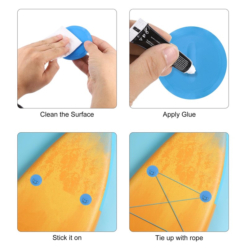 Before installation, you can clean the surface boat, apply glue to the back of the D-ring patch gently press, and then stick to the boat.