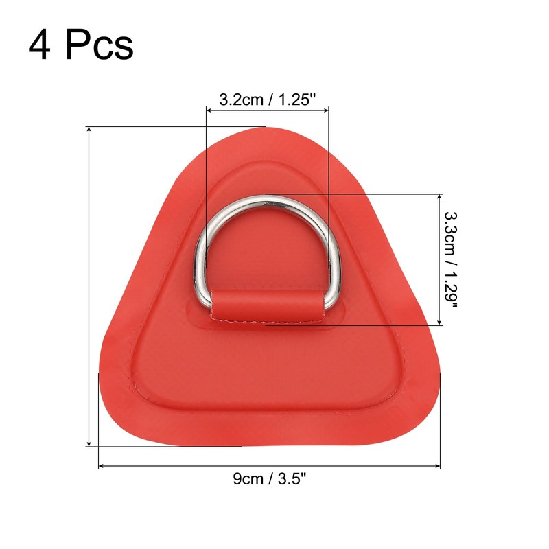 - Color: Red; Material: Stainless steel, PVC; Size: 9x9 cm/3.5x3.5 Inch (L*W); Packing List: 4 Pcs x PVC Paddle Board D-Rings