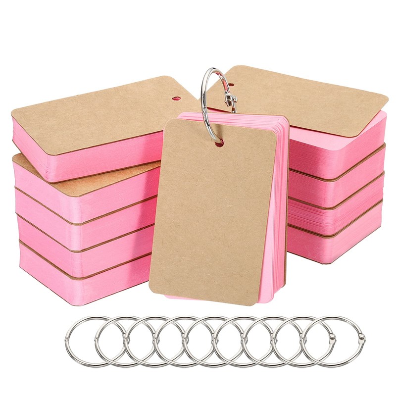 PATIKIL 3.5" x 2" Blank Flash Cards with Rings, 500 Pack Study Cards Index Cards Note Card Pre Hole Punched for Learning, Pink
