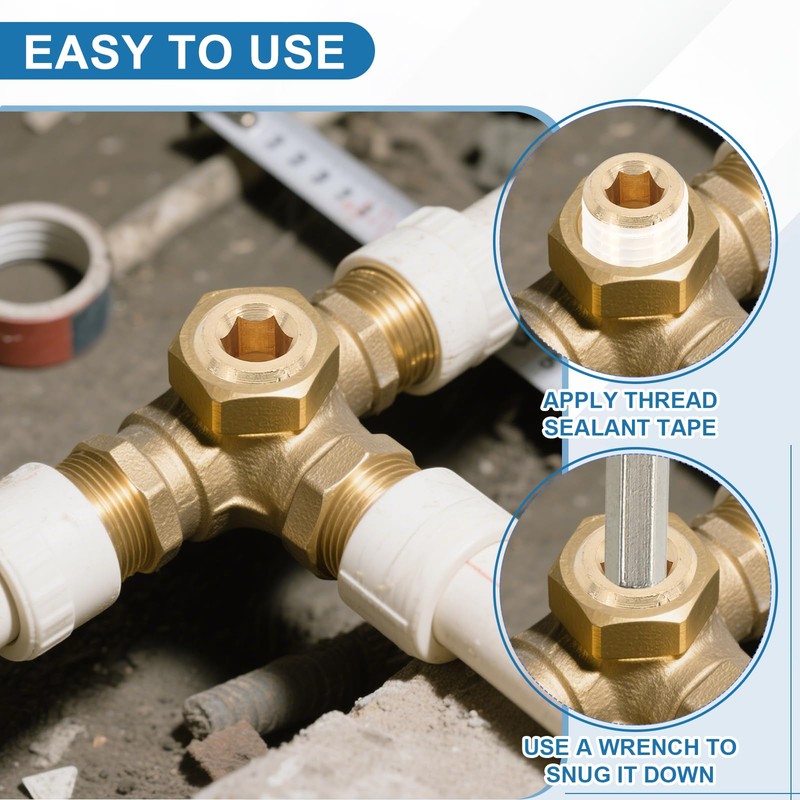 - Instruction: Apply thread sealant tape to the male threads for a secure, leak-proof seal. Hand-tighten the plug into the pipe, then use a wrench to snug it down. (Note: Verify the thread size before purchasing to ensure compatibility with your pipes.)