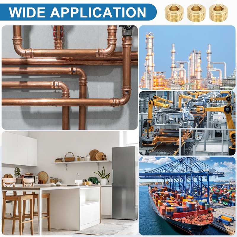 - Durable Brass Construction: Brass Hex Pipe Plugs are made from premium brass, with acid-resistance, corrosion-resistance, high strength and high hardness. Secure Sealing: The thread design ensures a tight, leak-proof fit when properly installed, preventing fluid or gas leakage in pipes.