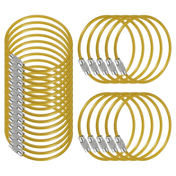 [PATIKIL] 3.9" Long Wire Keychain Cable 25 Pack Stainless Steel Key Ring Loop, Yellow