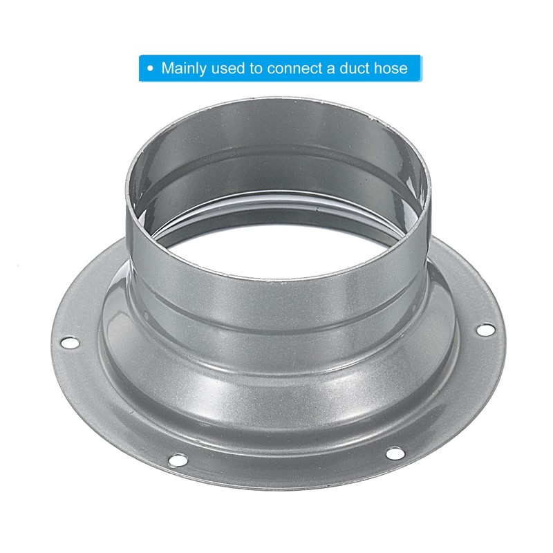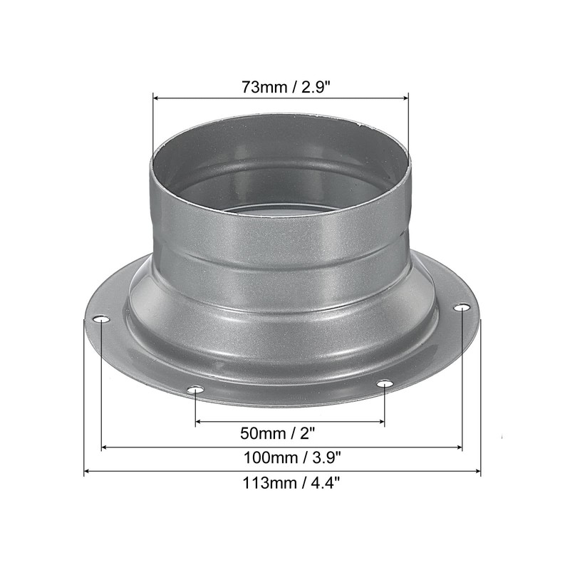- Interface Outer Diameter: 73 mm / 2.9 inch; Diagonal Mounting Hole Distance: 100 mm / 3.9 inch; Distance Between Adjacent Mounting Holes: 50 mm / 2 inch; Base Outer Diameter: 113 mm / 4.4 inch; Color: Grey; Material: Galvanized Iron; Packing List: 2 x Duct Connector