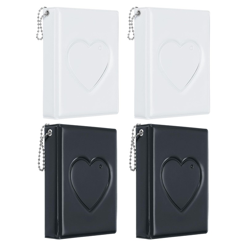 PATIKIL 3 Inch Mini Kpop Photocard Binder Album with 32 Pockets Small Bookshelf Love Heart Picture Holder Book for Collection 4 Pack, Black White