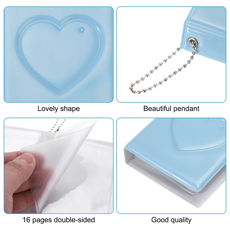 - Advantage: Photo card book is made of good quality PVC material with a hard shell, which can protect your photos from getting wet and fading. Exquisite key chain for you to hang any item to decorate your album. The middle of the heart design is to put favorite card to make it exclusive.