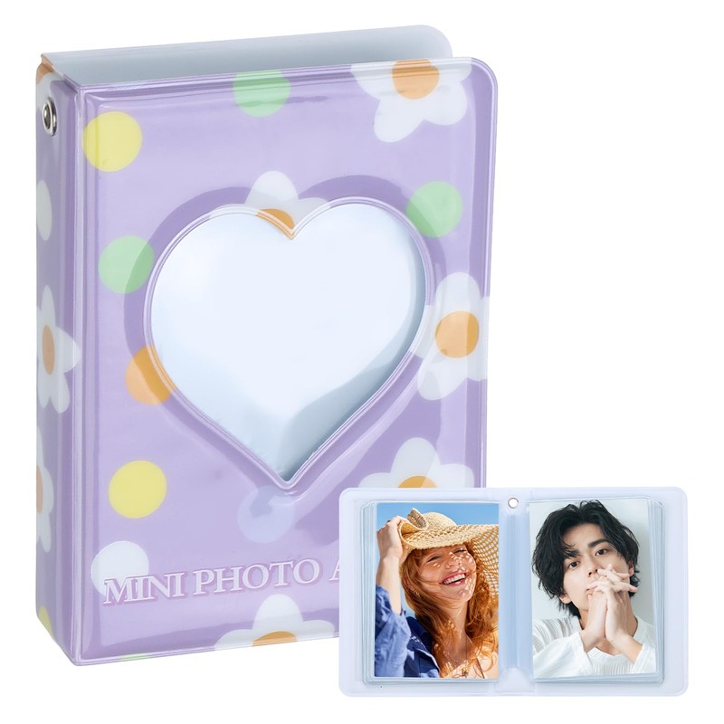 - Style: Purple Flower Love Heart, Material: PVC, Size:4.3×3.1×0.8 inch/11×8 ×2.5 cm(L*W*H), Page Size:3.6×2.6 inch/ 9.2×6.7 cm(L*W), Capacity:20 Sheets/40×Photos