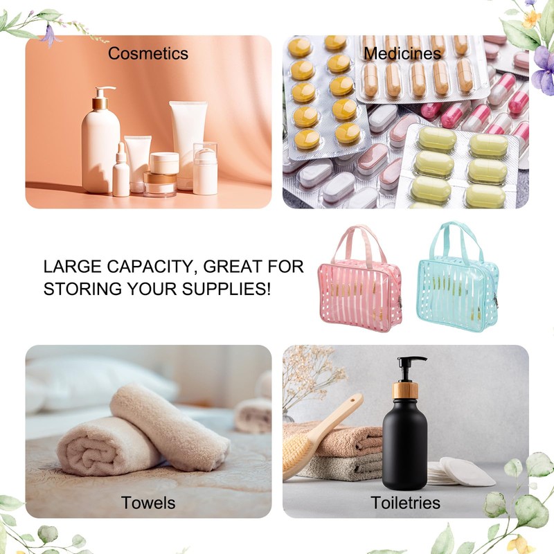 - Durable and Waterproof: Clear Makeup Cosmetic Bag features sturdy waterproof, dustproof and effortless cleaning. The see-through design instantly reveals contents, great for daily organization. Portable and Convenient: Travel Toiletry Bag features a sturdy zipper closure and a handle strap for portability. Lightweight yet roomy, it folds flat for compact storage, suitable for suitcases, backpacks, or drawers.