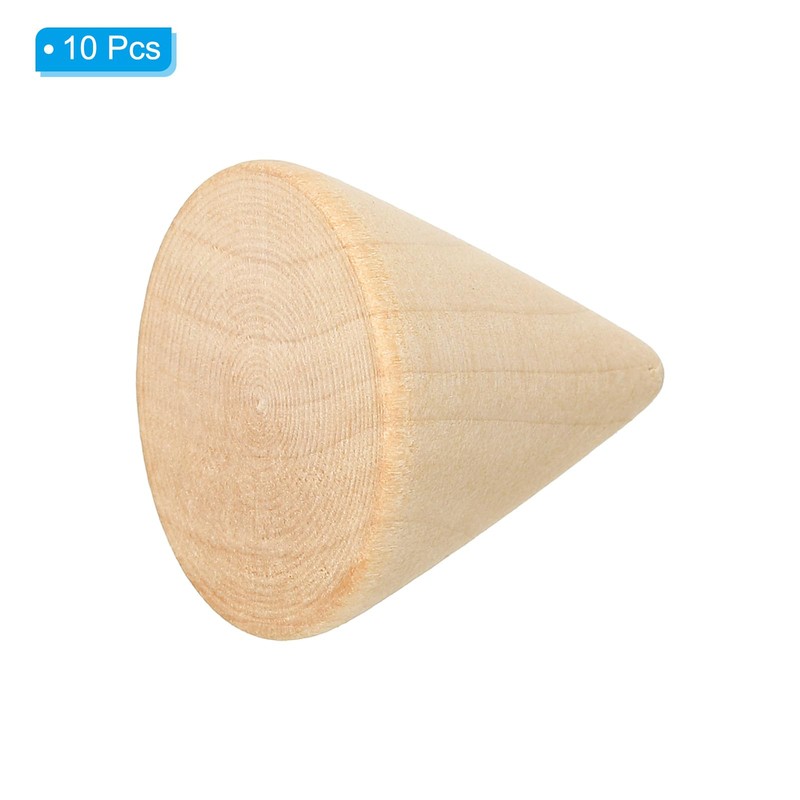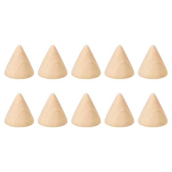 PATIKIL 30 x 30 mm Natural Wooden Cone Ring Holder Pack of 10 Finger Jewellery Display Stand Organiser Unpainted Wooden Cone for DIY Crafts Brown