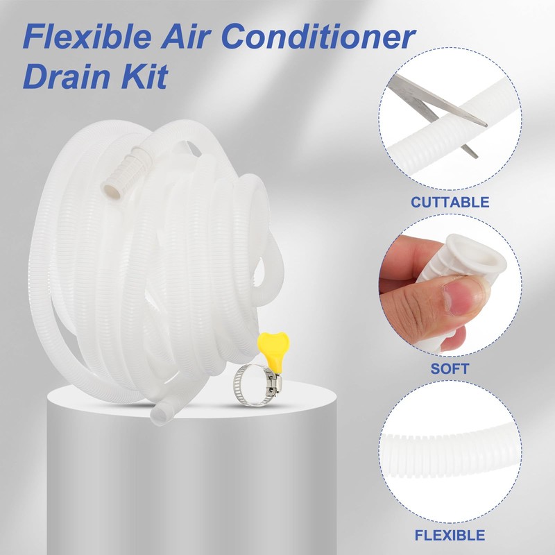 - Instruction: Easy to install, fix the drain hose to the drain outlet of AC units with the clamp.