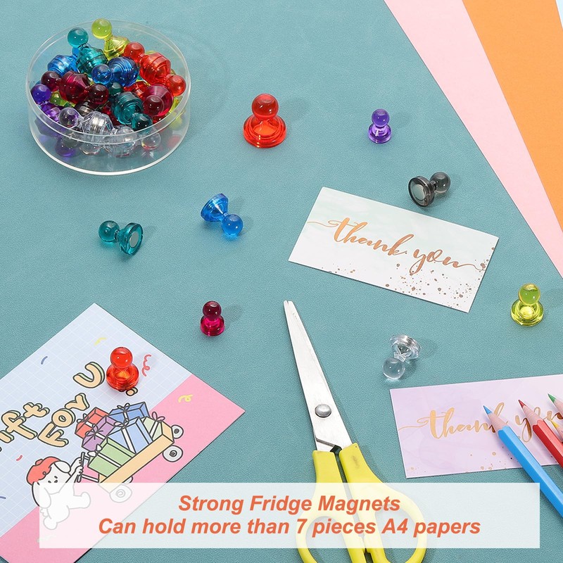 - Advantage: The magnetic push pins are made of durable material, have a long life, and are not easy to break; Each colorful refrigerator magnet is strong in the magnetic force, can hold more than 7 A4 papers on the teaching whiteboard, good fixing effect; Small size design, the push pins will not cover the exact items you want to display. Bright colors, shape design, easy to hold;