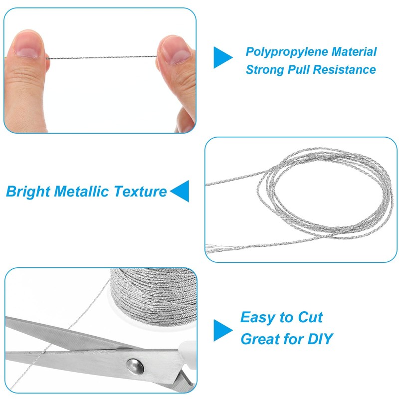 - Specifications: Material: Polypropylene; Color: Silver Tone; Roll Length: 35m/38yds/115ft; Roll Wire Diameter: 0.6mm/0.02";Package List: 1 roll of metallic cord