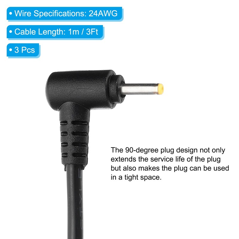 - Specification: Material: PVC, Copper; Color: Black; Wire Specifications: 24AWG; Cable Length: 1m / 3Ft; Plug Size: 2.5 x 0.7mm / 0.1 x 0.03inch (OD*ID); Package List: 3 x USB to DC power cable