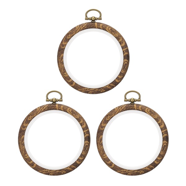 PATIKIL 3inch Embroidery Hoops, 3Pieces Imitated Wood Circle Frame Cross Stitch Hoop Ring for Embroidery Art Craft Sewing Ornaments Hanging Decoration
