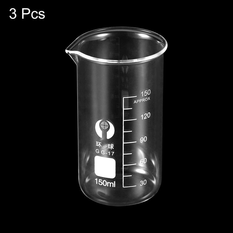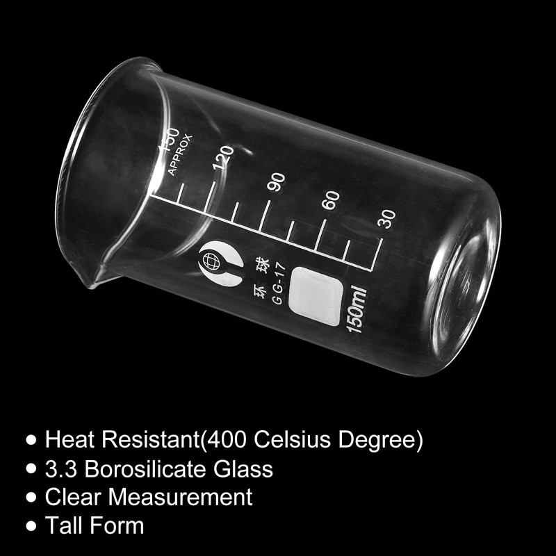 - Specification: Capacity: 150ml; Minimum Scale Value: 15ml; Material: Borosilicate Glass; Max Temperature: 400 Celsius Degree; Overall Size: 53 x 102mm / 2.09 x 4.02"; Package Contents: 3 x Glass Beaker