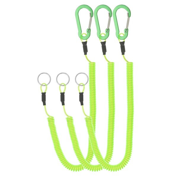 PATIKIL 3pcs Retractable Spring Coil Straps, 6" Spiral Stretchy Safety Lanyard Cord with Aluminium Clip and Key Ring for Fishing Kayak Climbing Boating Pliers, Green