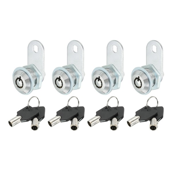 PATIKIL キー付きキャビネットカムロック 4パック5/8"(16mm) キーが異なるカムロックシリンダー 亜鉛合金クロム引き出しロック チューブ ラーカム 取り外し可能なキー 引き出しキャビネットセキュア