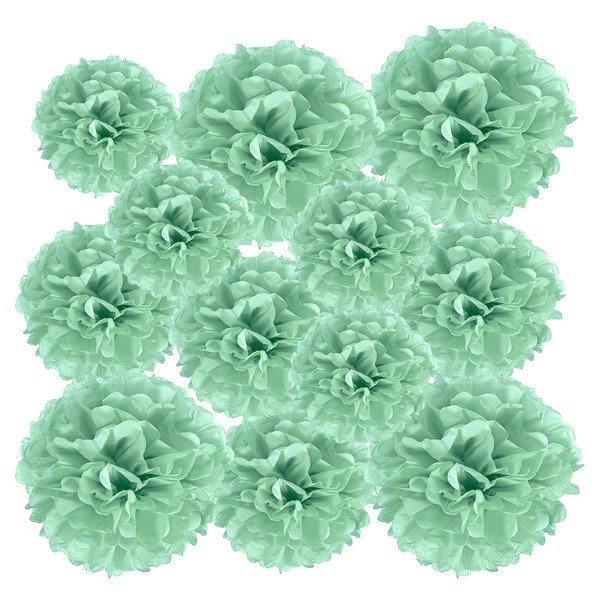 PATIKIL 4"/6"/8" Tissue Pom Poms Flowers, 12 Pack Paper Flower Ball for Wedding Bridal Shower Birthday Bachelorette Party Backdrop Decoration, Mint Green