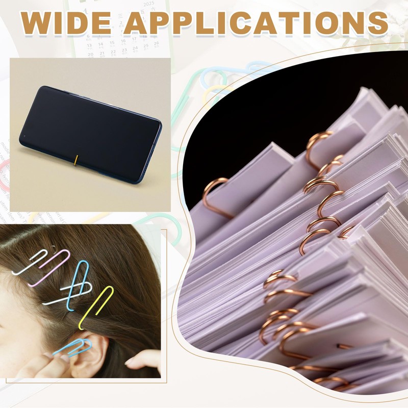 Application -Paper clip are suitable for home, office, classroom, library, file sorting, fixing documents, envelopes, money or photos, and can also be used as DIY, such as: DIY bookmarks, unique necklaces, temporary hair clips, album clips, business card holders, envelope clips, economical food clips, etc., and can also be used as mobile phone holders.