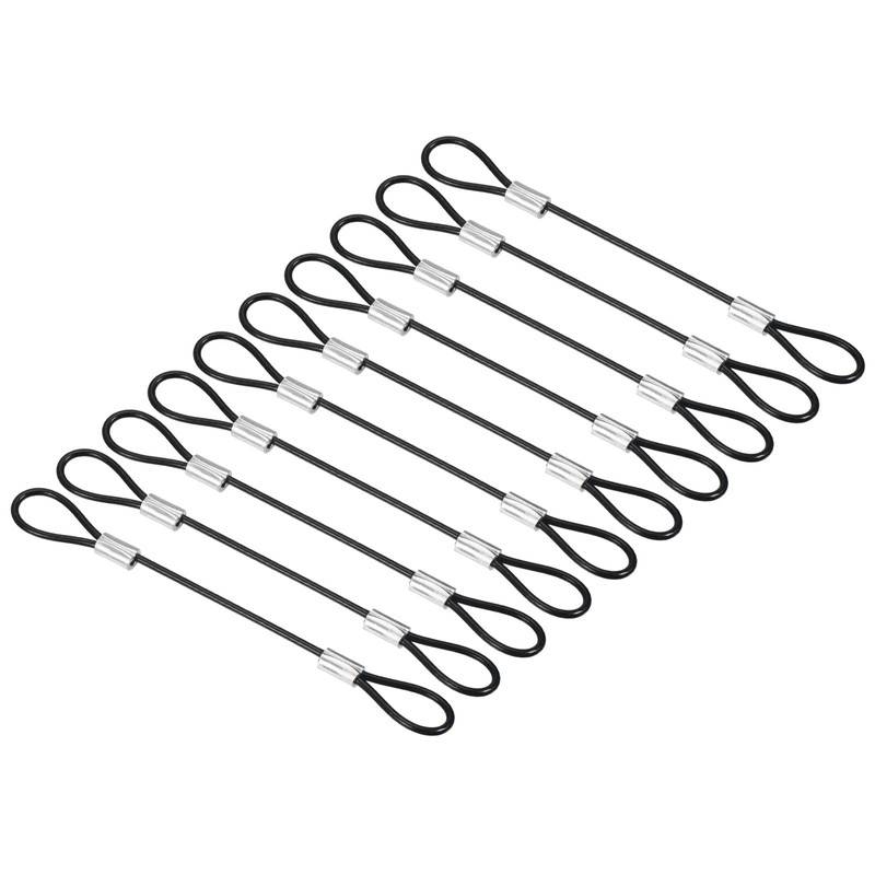 PATIKIL 4 Inch Safety Cable Lock, 10 Pack Stainless Steel 2mm Dia Security Wire Rope with Double Loop for Stage Lighting Luggage Lock Black