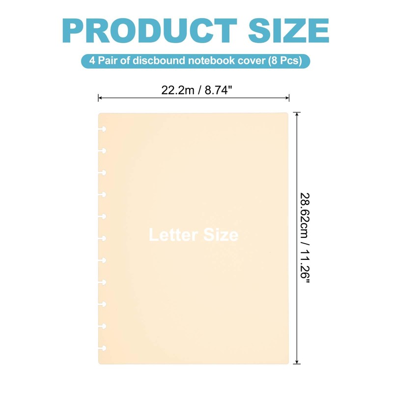 - Material: PP; Color: Beige; Size: Letter 22.2 x 28.6cm / 8.74 x 11.26inch; Packing List: 4 Pair of discbound notebook cover(8pcs)