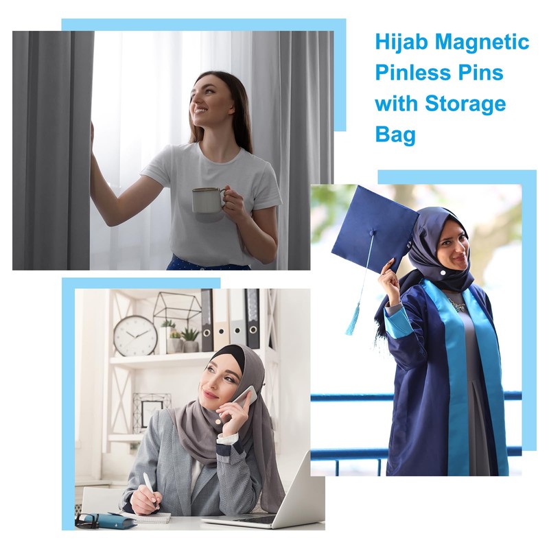 - Application: Hijab Magnetic Pins make fixing the headscarf, scarves, shawls, curtains, and storage easy. It is suitable for various situations such as daily life, outdoor activities, ceremonies, etc., especially for marathons, sports events, business events, gifts, and souvenirs.