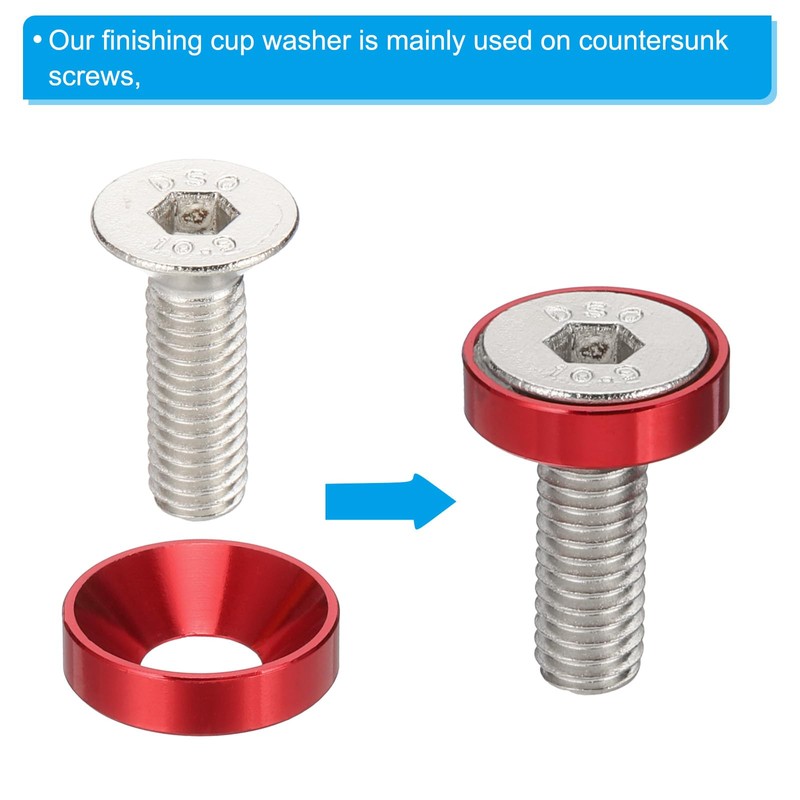 - Anodised aluminium washers: the countersunk washer is made of anodised aluminium alloy, which provides durability and corrosion resistance. The flat screw head design ensures a flush and secure fit when used with screws. The vibrant color adds an aesthetic touch to your projects.